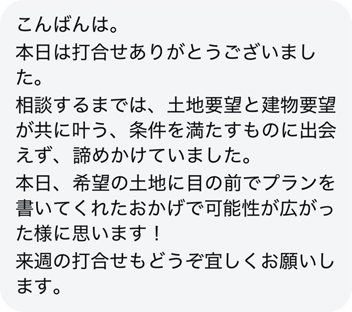 - 注文住宅を建てるのはまだ先ですが、相談に乗ってもらえますか?